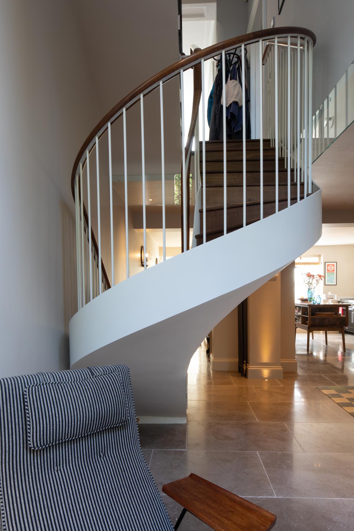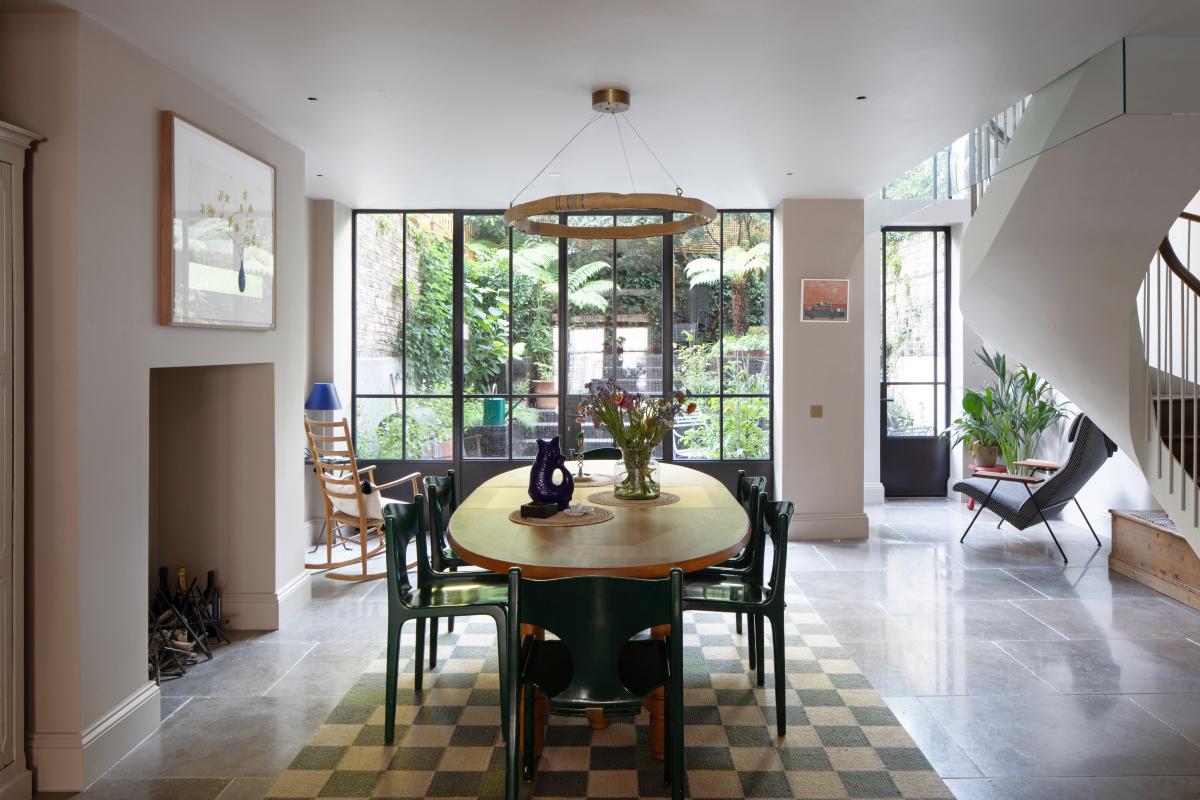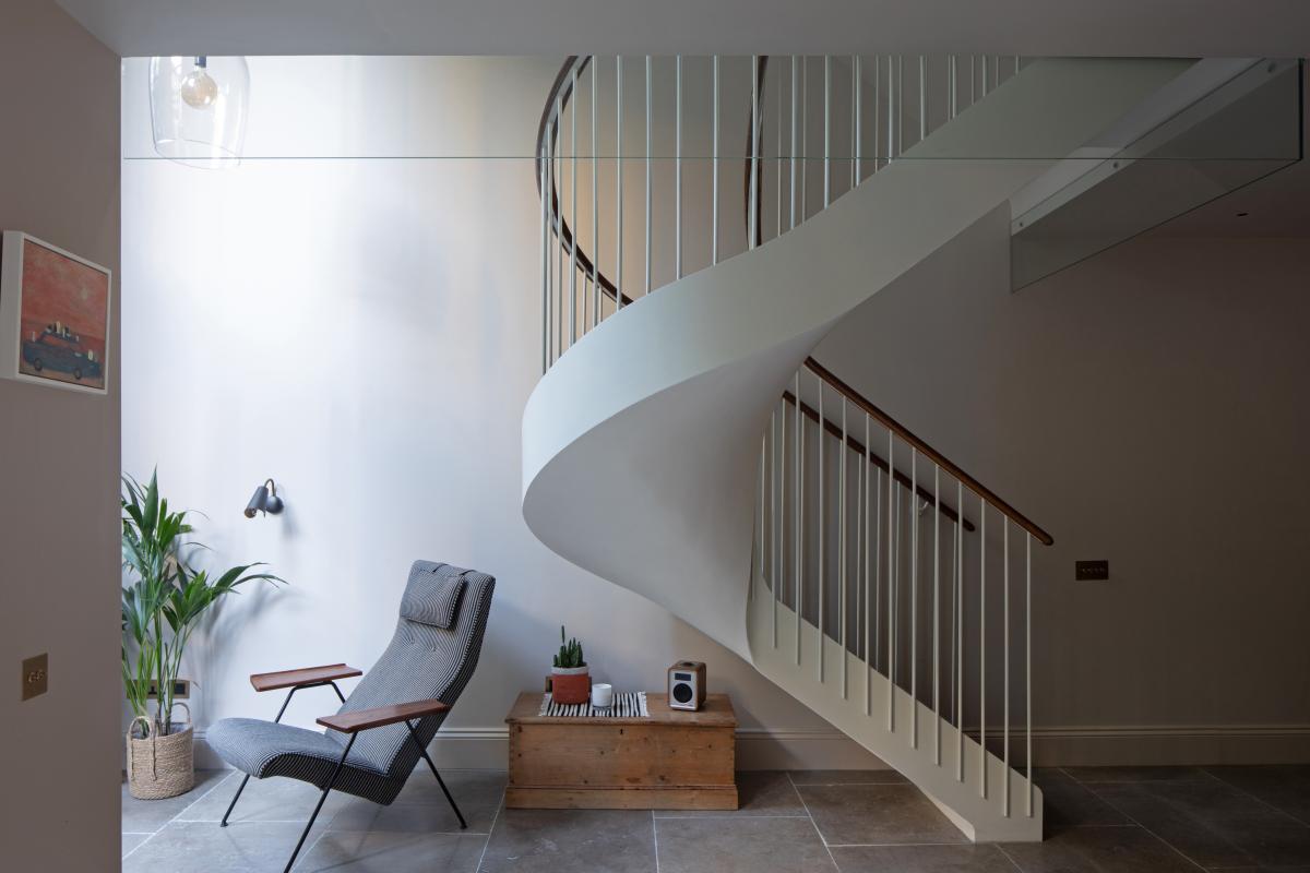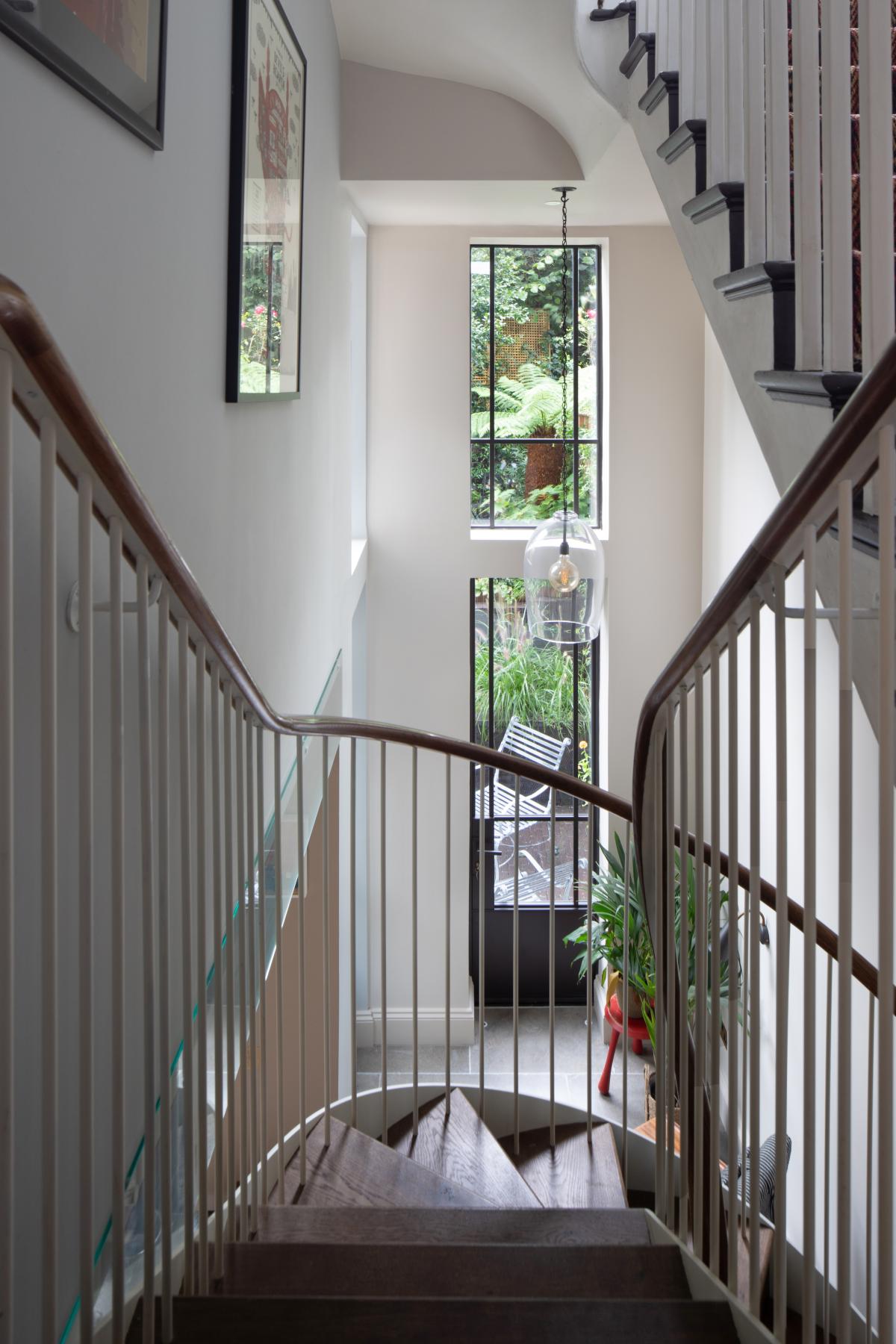 This classic Notting Hill townhouse suffered from a lack of connection to the garden and a cramped stair connection to a lower ground floor of dark rooms. We opened up this level to create a spacious kitchen and dining room as well as adding a light-filled atrium with bespoke floating stair, and a re-landscaped courtyard garden.