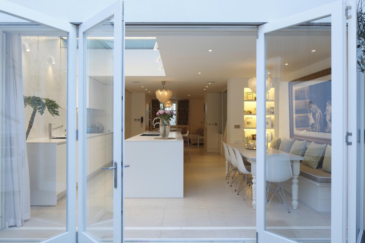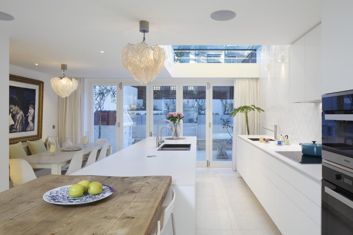 The lower ground floor level previously contained a separate flat, this has been incorporated into the main house and significant structural works and glass roofed rear extension have provided a large, modern, open-plan living area in a house otherwise spread vertically over many levels.
